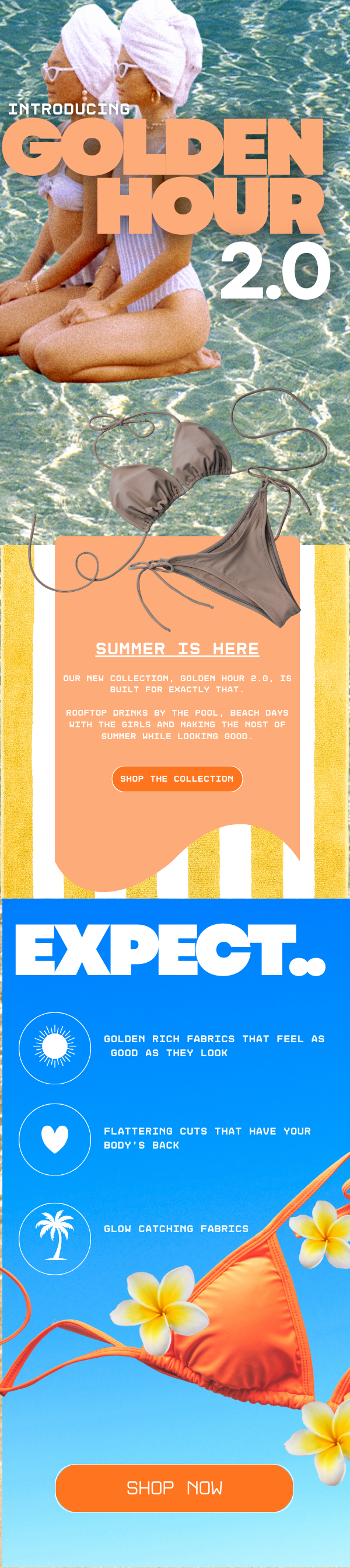 They came to Email Daddy wanting a cinematic launch campaign for their new Golden Hour 2.0 swim collection – something that felt like a mood, not just a “new in” email.